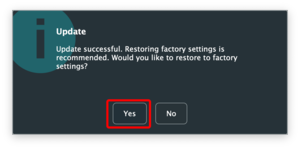 Once the update is complete, you may want to reset to factory settings to ensure stability by clicking Yes.